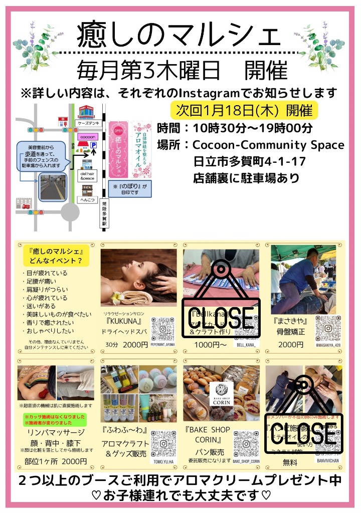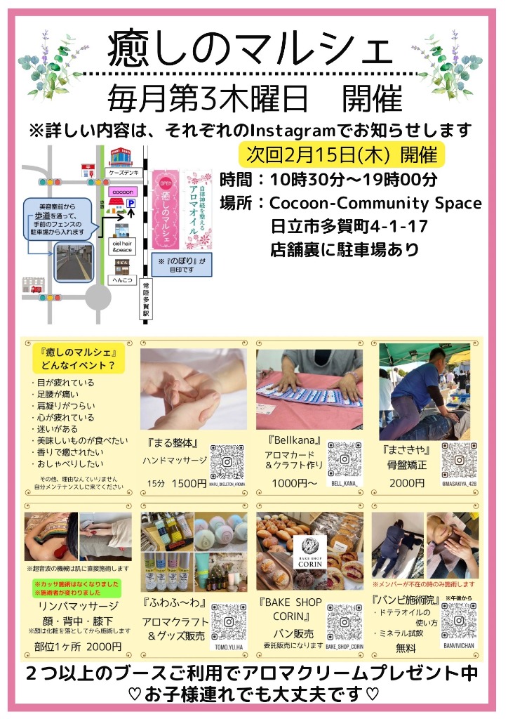 店舗がある東海村から日立市に出向いて毎月沢山の皆さんに癒しを届けています♪
